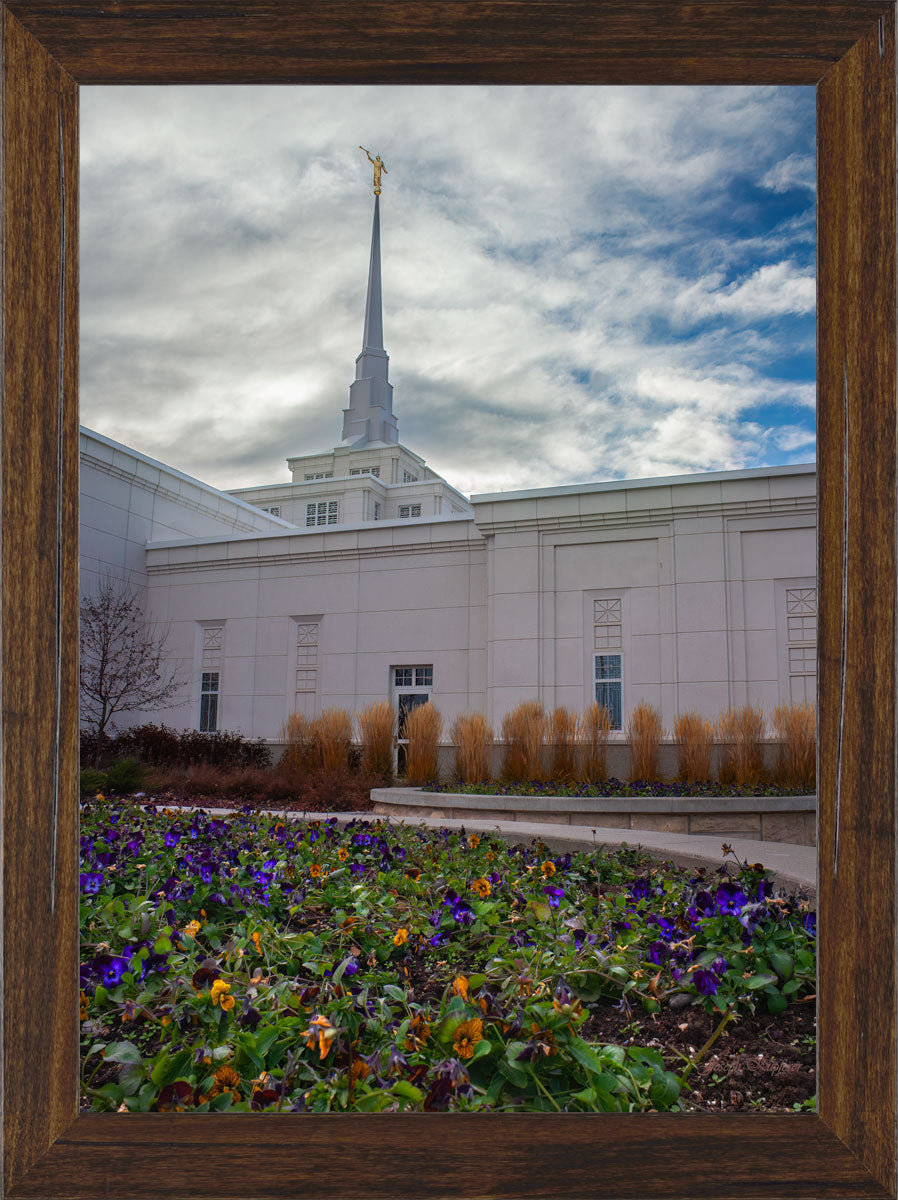 As I took the other photo from this spot (Billings Gold), I walked around the temple to see if there were different spots or angles that I liked of the temple. As I got to the last side, I saw a bed of flowers that were still in bloom in front of the temple, and I snapped this!