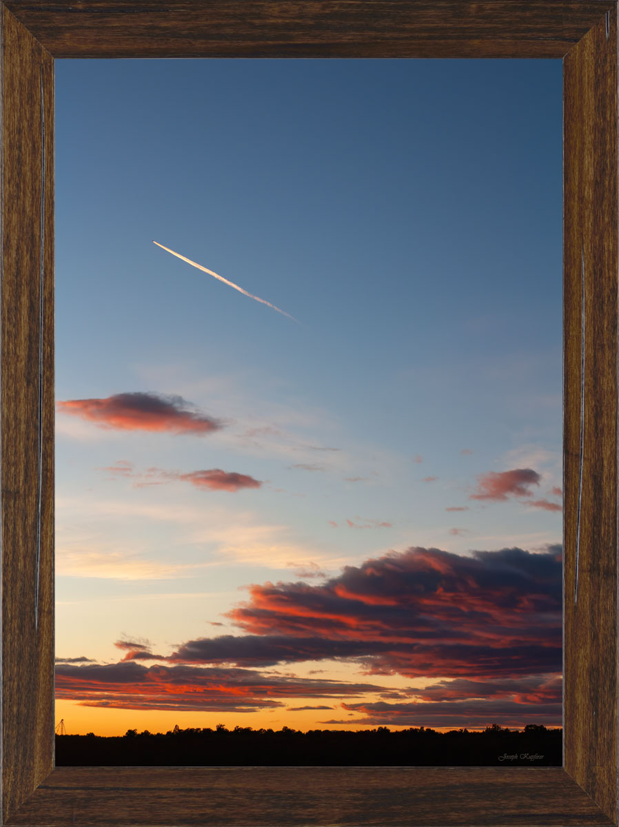 I was driving home when I came across this wonderful sunset. I was getting different photos of it when I saw this plane flying onward and upward from the sunset, and I thought that this made for an amazing scene!